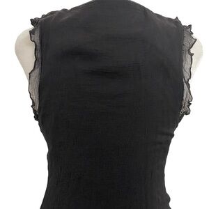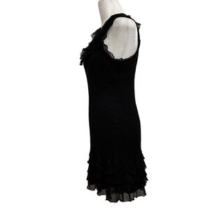 Knitted Dove Black Crinkle Crepe Ruffles Sleeveless Mini Stretch Dress
