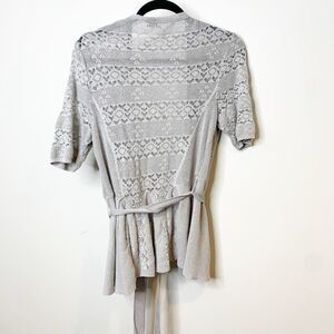 Knitted & Knotted Womens Gray Crochet Tie Front Cardigan Sweater Size Medium