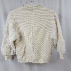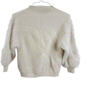 Knitted & Knotted Cream Textured Sweater | Fuzzy Sleeve Detail | Size S