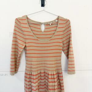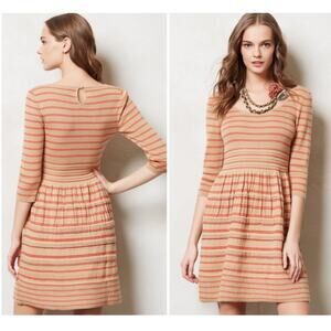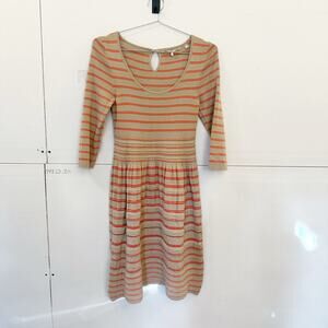 Knitted & Knotted Elodie Wool Blend Striped Sweater Dress Orange sz M