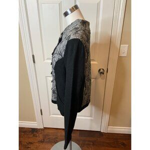 Knitted & Knotted Gray & Black Floral Embroidered Jacket W/ Boiled Wool, Size XL