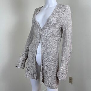 Knitted & Knotted Size S Bella Resortwear Crochet Knit Linen Cardigan Sweater