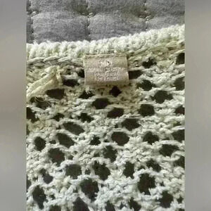 Great season transition piece with loose knit and split high-low hem. Perfect for leggings. Gorgeous black floral detail on the shoulders. Color is more cream than white. Excellent condition. Size is Medium/Large. Measurements in photos. Nonsmoking home.