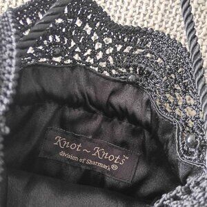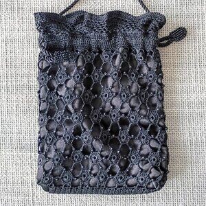 Knitted Lace Black Drawstring Pouch with beads Small Evening Purse Elegant | NEW