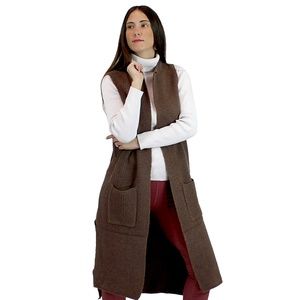 Knitted Long Vest w/Pocket Cardigan Sweater Coat