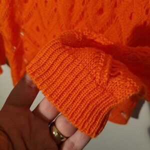Knitted Orange Fall Halloween Open Weave Long Sleeve Pullover Sweater NWT Medium