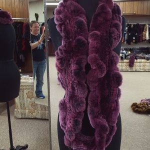 Knitted Ruffled Rex Rabbit Fur Infinity Scarf