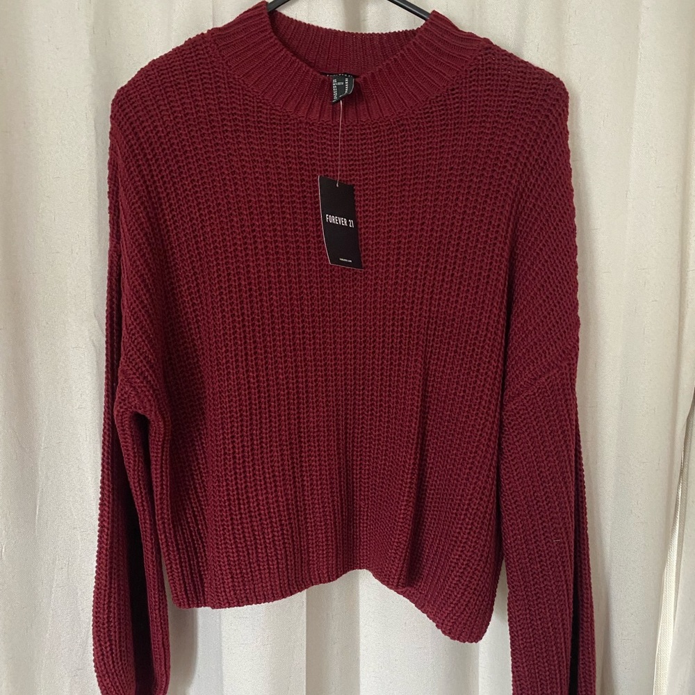 NWT. Deep Red knitted crop sweater.