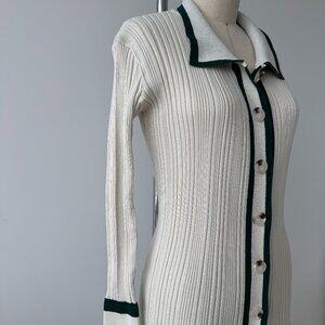 Knitted Sweater Long Dress Vintage Long Sleeve V Neck Bodycon Maxi Dress size XS