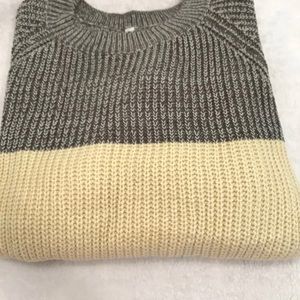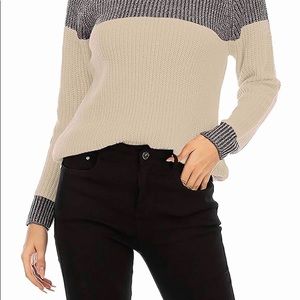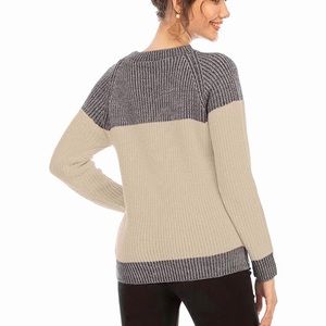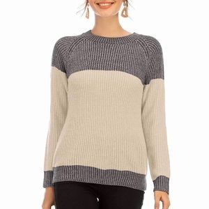 Women Long Sleeve Crew Neck Pullovers Stitching Color Loose Knitted Sweaters- New - beige