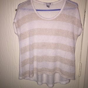 Short sleeve knitted top. Front is beige/gold and white striped. Back is white. Good condition.