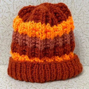 Knitted 🧶 Winter Beanie (Baby Size) pumpkin, salmon, & high visibility Orange
