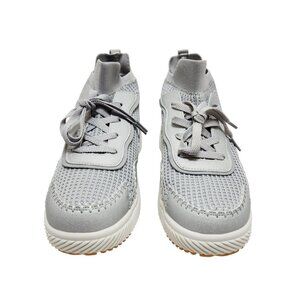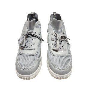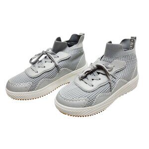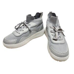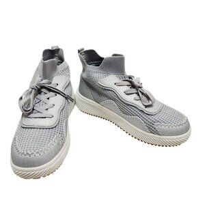 Knitted Womens Gray High-Top Sneakers With Lace-Up Closure Size 7.5