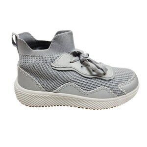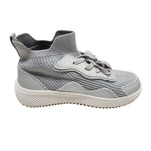 These sneakers are a fine example of modern footwear technology and style, blending comfort and durability. The high-top design offers ankle support, while the knitted fabric provides breathability, making them suitable for extended wear. The gray color adds a touch of sophistication, ensuring they complement a vast array of outfits, whether casual or sporty.