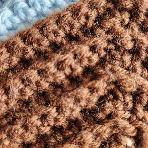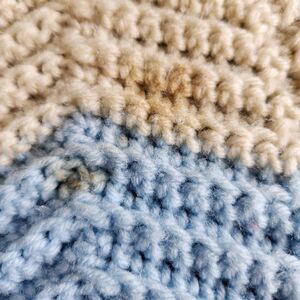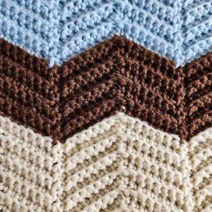 Knitted afghan blanket granny Chevron blue cream Brown Queen 86x75.5 handmade