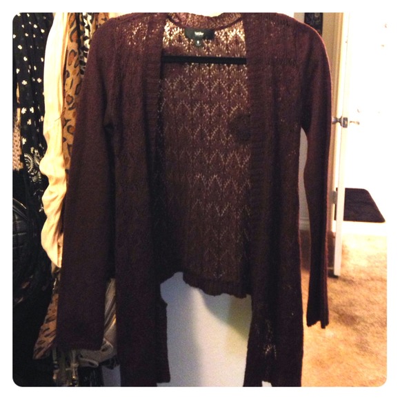 Maroon high low, knitted, chevron patterned cover up, no wear & tear. Good for the winter but still light enough to wear at night during the summer (: