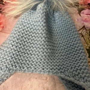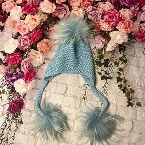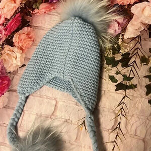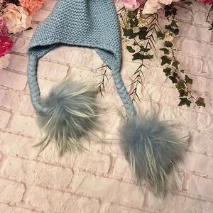 Soft light blue knit with 3 real fur balls Warm and great for snowy winter days
