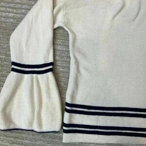 Knitted & knitted cold/off shoulder ruffle sleeve stripe cotton sweater top
