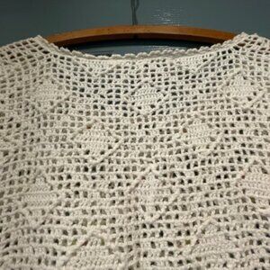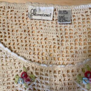 Knitted vintage top, boho, charming, white/floral, L, never worn