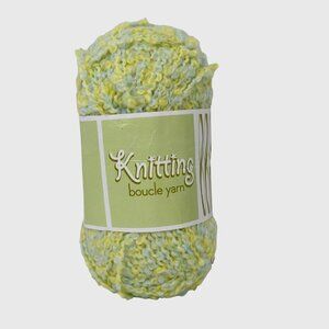 knitting yarn, boucle yarn, soft yarn, fluffy yarn, acrylic yarn, polyester yarn, knitting supplies, light green yarn, yellow yarn, craft yarn, crochet yarn, knitting projects, yarn bundle, craft supplies