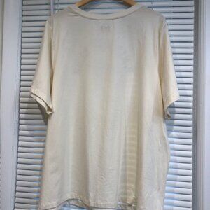 -Crew neck. Short sleeve. Beige. Cute graphic on chest.