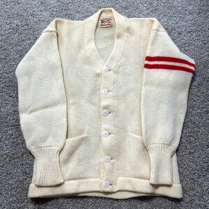 Knitting Masters Vintage 1950s Princeton Wool Cardigan Sweater W/ Red Stripes
