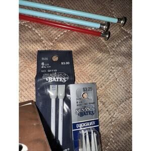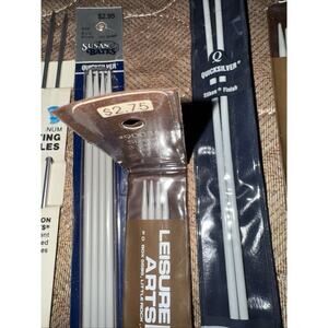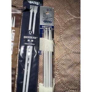 This lot includes various knitting needles of different colors and sizes made of plastic and metal. The needles are mostly new and come from the brands Susan Bates and Various brands. The lot contains 2, 4, 5, and 6 sizes and is perfect for knitting different projects.