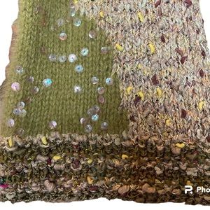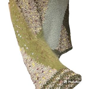 Knitting Needles multimedia sweater. Sequined & color blocked design. Sz L Green