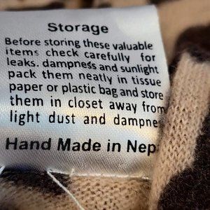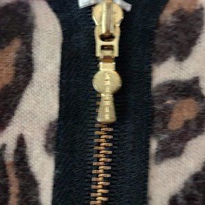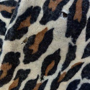 Good condition, does have numerous small holes, mostly on right sleeve and missing hood drawstring, still very pretty soft 100% cashmere animal print hoodie jacket, full zip w/pockets