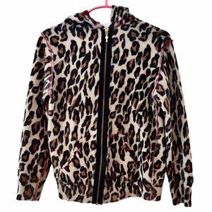 Knitwit Girls 8 Animal Print 100% Cashmere Full Zip Pockets Hoodie Jacket Flaws
