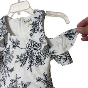 This elegant sundress by Knitworks features a sleeveless design with a cold shoulder neckline, perfect for a wedding guest occasion. The dress showcases a fit and flare silhouette in a striking blue color, adorned with a vibrant floral print. Its structured fabric and defined waistline ensure a flattering and romantic look.