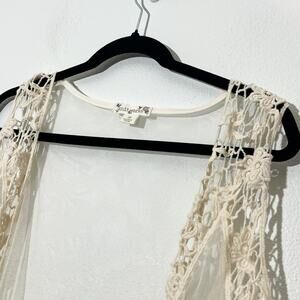 Knitworks Sheer Boho Vest Womens 16 Beachy Bohemian Crochet Fairy Ethereal Y2K Sheer Mesh Wrap Lace Duster