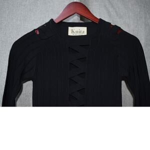 Knitz by For Love & Lemons Black Lattice Front Long Sleeve Bodysuit Size S