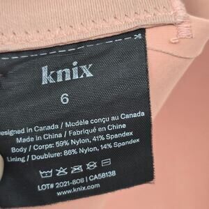“Knix size 6 – generally fits approx. 34DD, 36D, or 38C (per Knix size chart). Please refer to measurements for best fit.”