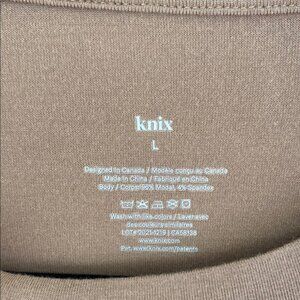 Knix T Shirt. Women's tag size large (see photos for measurements). 96% Modal, 4% Spandex. Very soft and extra stretchy. Light brown. Short sleeve. Relaxed hem. Traditional tee.