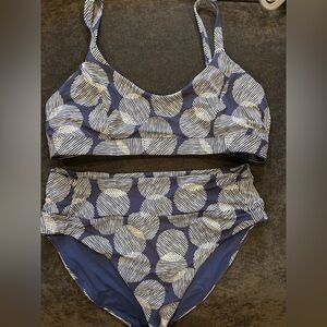 Chic bikini set with navy and white design. Ideal for beach days. Top:XL Bottom:L