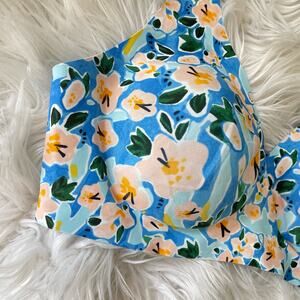 Knix Revolution Wireless Wire Free Seamless V Neck Bra Blue Floral 36 D DD 1+