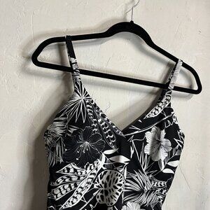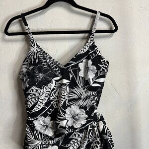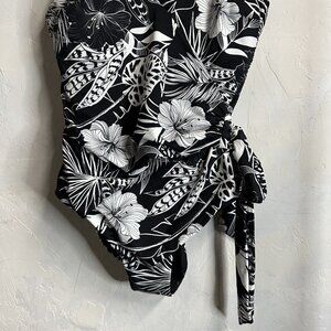 Knix Side Tie One Piece Your Wrap Swimsuit Floral Black Womens Large NEW