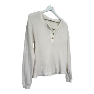 Knix Women’s Waffle Henley Long Sleeve Thermal Top Cream Size M