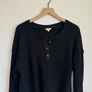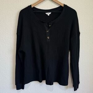 Knix Women's XXL Waffle Henley Top Black Loungewear Cozy Boho Minimalist