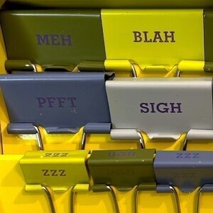 - 8 ea. 1.25" clips (2 ea. "meh", "blah", pfft, "sigh").