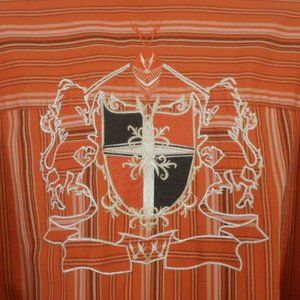 Knockout Button Up Long Sleeve Shirt Mens 3X Burnt Orange Striped Embroidered