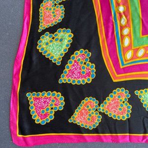 Knockout Ginnie Johansen Vibrant 100% Silk Scarf Heart Spade Pattern 80s LG NWOT