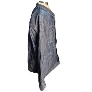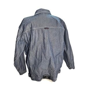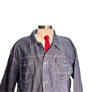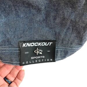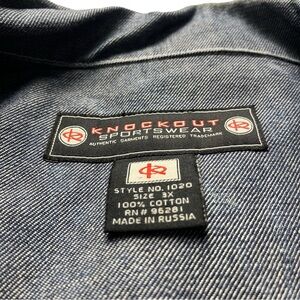 This jacket has various accents like a button-up closure with the Knockout logo, making it a designer piece. It's a vintage jacket that has a Y2K baggy urban street theme, making it perfect for hip-hop lovers. It's machine washable and available in size XXXL. This jacket is a must-have for those who love riding and walking. Order yours today and add the Knockout Jeans Los Angeles Denim Button-Up Jacket to your wardrobe collection.