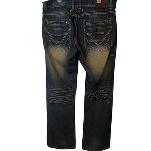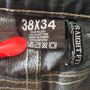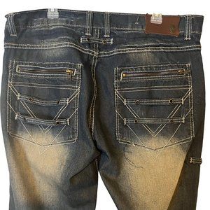 Knockout Jeans Mens 38 x 34 Straight Leg Moto Blue Zippers Faded Relaxed Denim 1