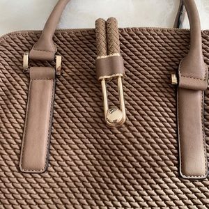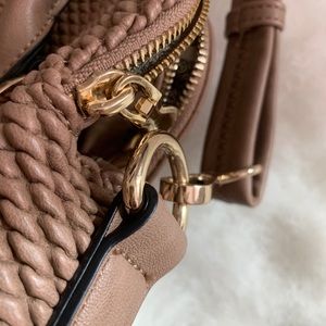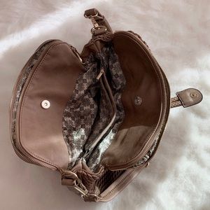 Gorgeous Light Tan Beauty: A lovely quilted purse with shoulder strap, arm handles and gold accents. Has two zippered-compartments and an open middle compartment. Has internal and external zippered-pockets. This is limited edition color and is no longer available at the original seller. Condition: Like new! Very gently used.
