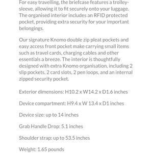 Knomo London Hanover 14in Laptop Briefcase Shoulder Work Bag Black 14x10x2 $227