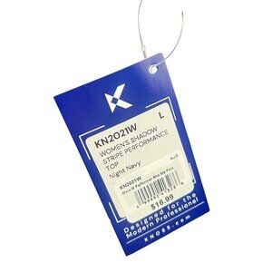 Knoss NWT Womens Shadow Stripe Performance Top L Night Navy Casual Relaxed Fit