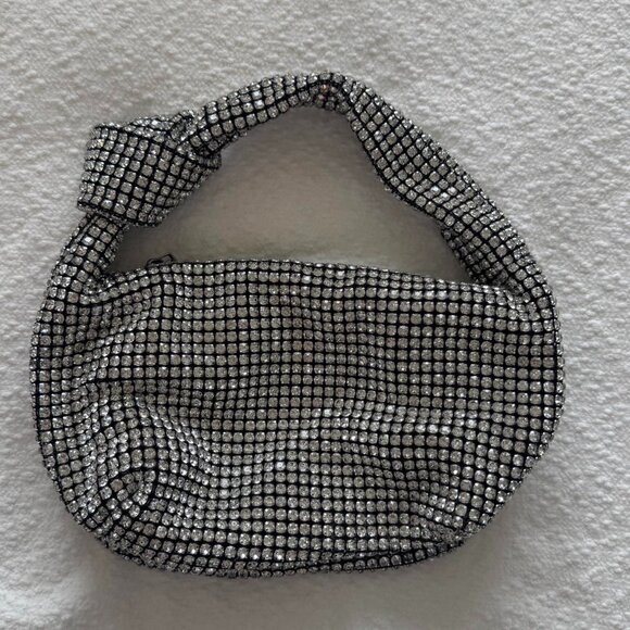Silver and black diamanté shoulder bag with knot #bottega #prada #dupe NEVER WORN. Replacement jewels included. #clutch