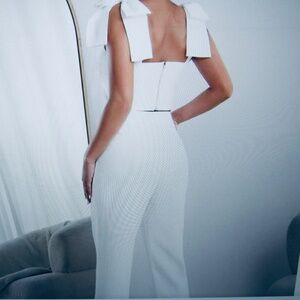 White 2 piece, bow knot shoulder crop top, back zipper, sweetheart neckline, solid print measures bust 37.8" - 39.4", length 16.1" shoulder straps